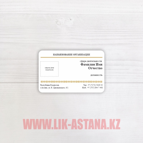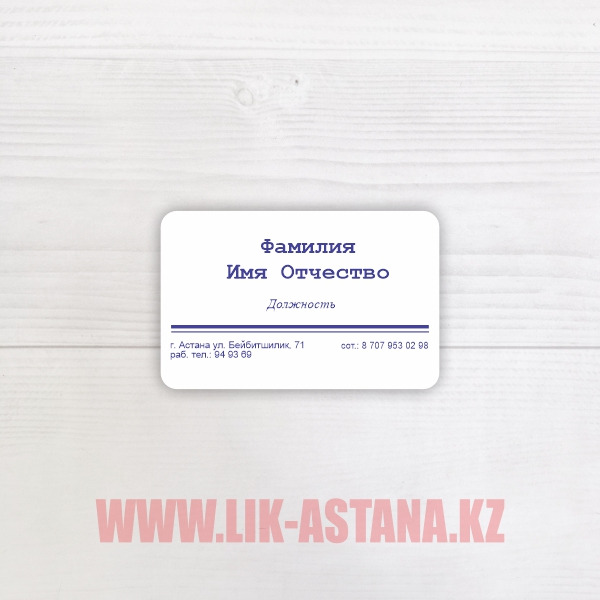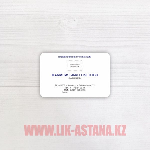 | Өлшемдері: 90х50мм., 90Х55мм., 86Х54мм., кез келген стандартты емес өлшемдер. |